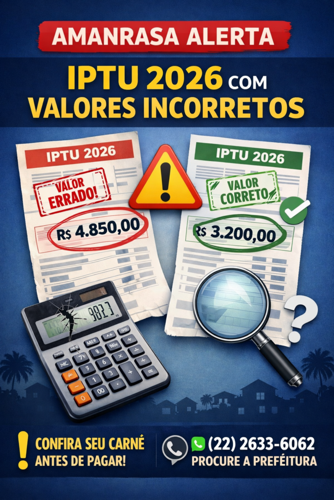 A Amanrasa alerta: muitos carnês de IPTU 2026 estão sendo emitidos com valores incorretos