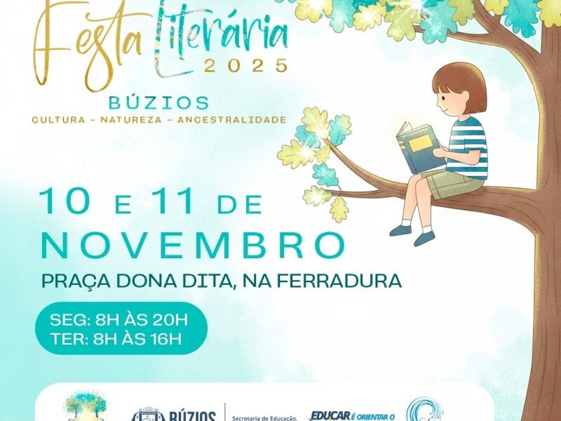 Dando início às comemorações pelos 30 anos de emancipação político-administrativa de Armação dos Búzios, a Prefeitura, por meio da Secretaria de Educação, Ciência e Tecnologia, realiza nos dias 10 e 11 de novembro a Festa Literária de Búzios 2025, com o tema “Búzios: Cultura, Natureza e Ancestralidade”.