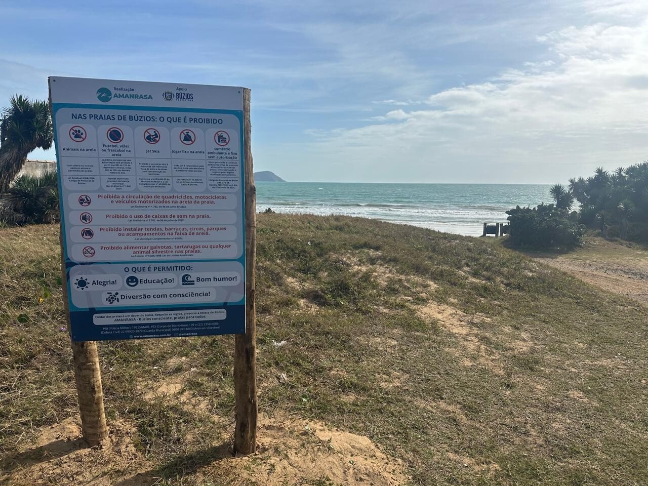 A AMANRASA instalou 10 novas placas informativas nas praias de Manguinhos e Rasa, mostrando de forma clara o que é proibido e permitido nas faixas de areia. As placas estão nas principais servidões de acesso, junto às lixeiras e avisos de monitoramento 24h já mantidos pela associação.